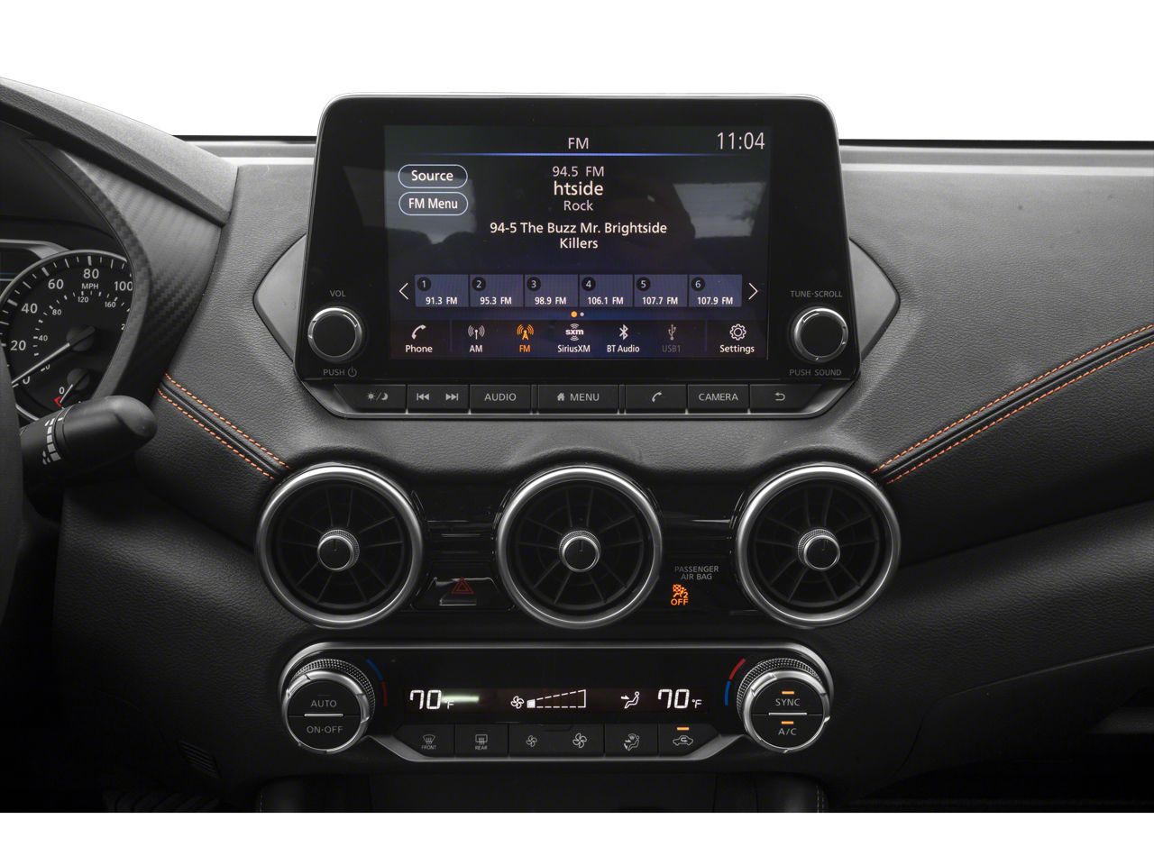 - Radio: AM/FM w/RDS/MP3/Aux-In -inc: 6 speakers, 8" color display w/multi-touch control, streaming audio via Bluetooth, Bluetooth hands-free phone system, hands-free text messaging assistant, Siri eyes-free, Google Assistant voice recognition w/Apple CarPlay and Android Auto, NissanConnect, (1) front USB connection port (type A) for iPod interface and other compatible devices, (1) additional front USB (type C) and (1) charge-only USB (type A) center console and SiriusXM radio
