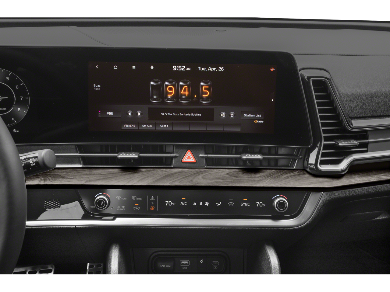 - Radio: AM/FM/HD Audio System -inc: 12.3" touchscreen w/navigation, 8 speakers including subwoofer, 400 W w/HALOsonic harman/kardon sound system, wired Apple Carplay and Android Auto, UVO telematics, voice recognition, SiriusXM, steering wheel mounted audio controls and Bluetooth phone and streaming audio